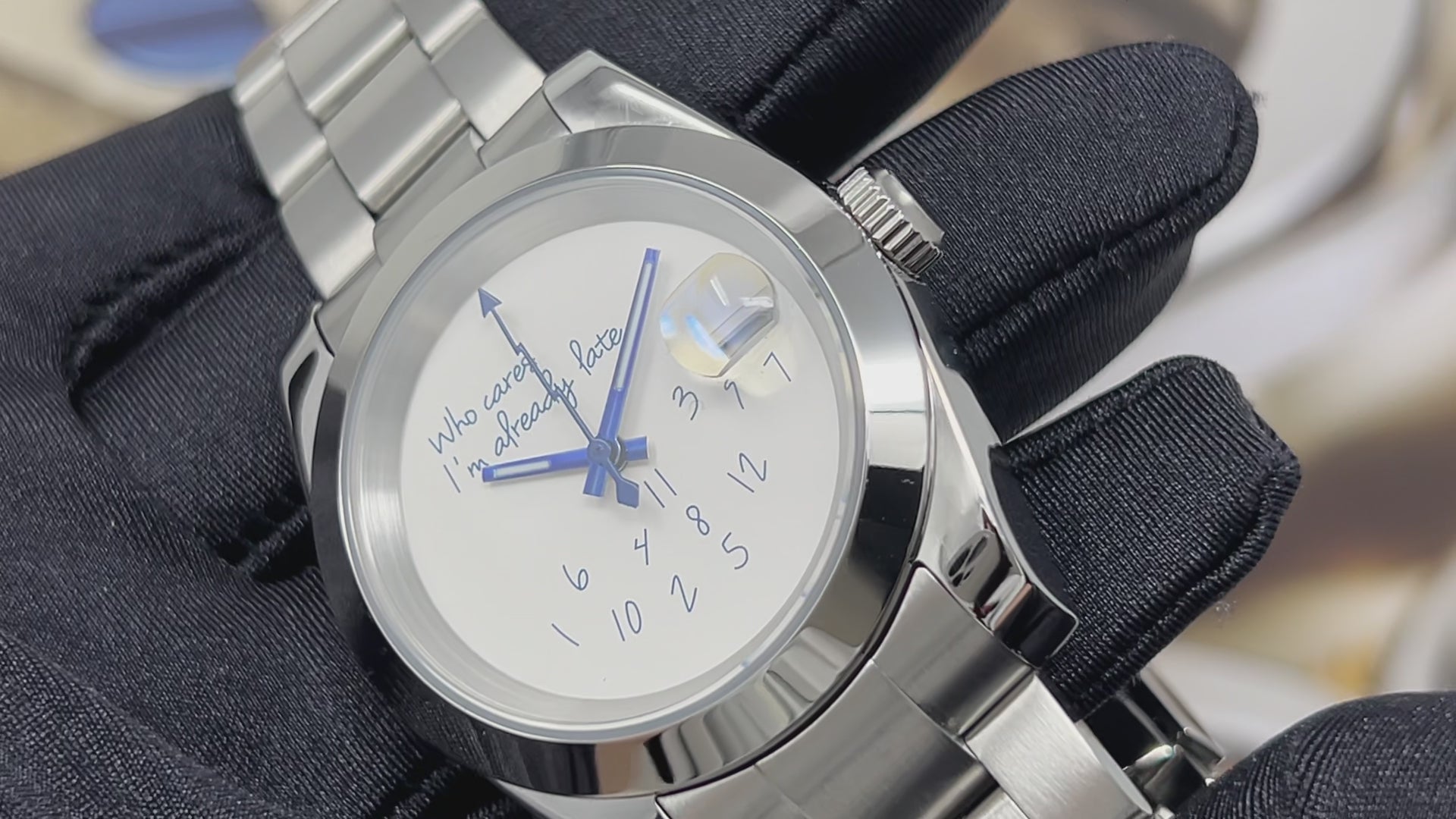 I recently received The NO DATE (important design feature) black submariner watch and I am so pleased with the result.